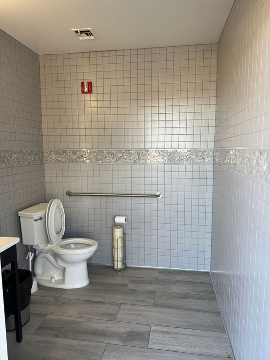 This project showcases various tile designs, including a modern tiled bathroom with accessible features, and a bathroom with pebble stone shower floor and marble walls.